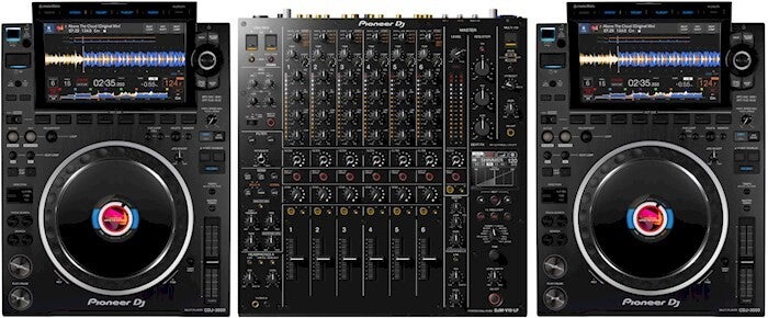 De set komt met een Pioneer DJM-A9, 2x CDJ-3000 en een mini-jack kabel voor het aansluiten van onder andere je telefoon.